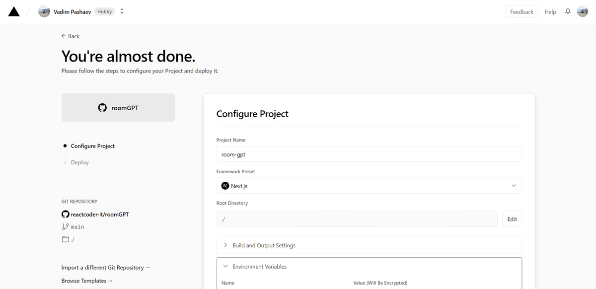 Настройка проекта перед развертыванием на платформе Vercel довольно проста и состоит из нескольких шагов.